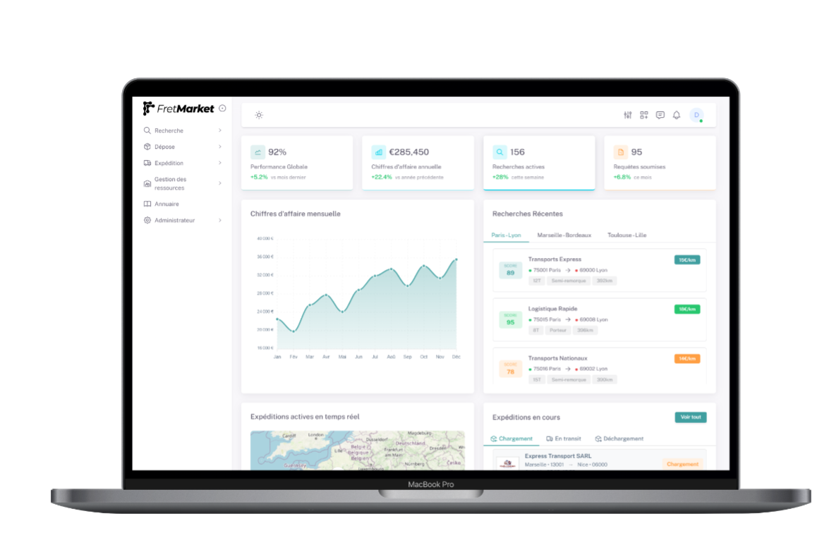 FretMarket vous offre tous les outils nécessaires pour optimiser votre chaîne logistique, réduire vos coûts et améliorer votre efficacité opérationnelle.